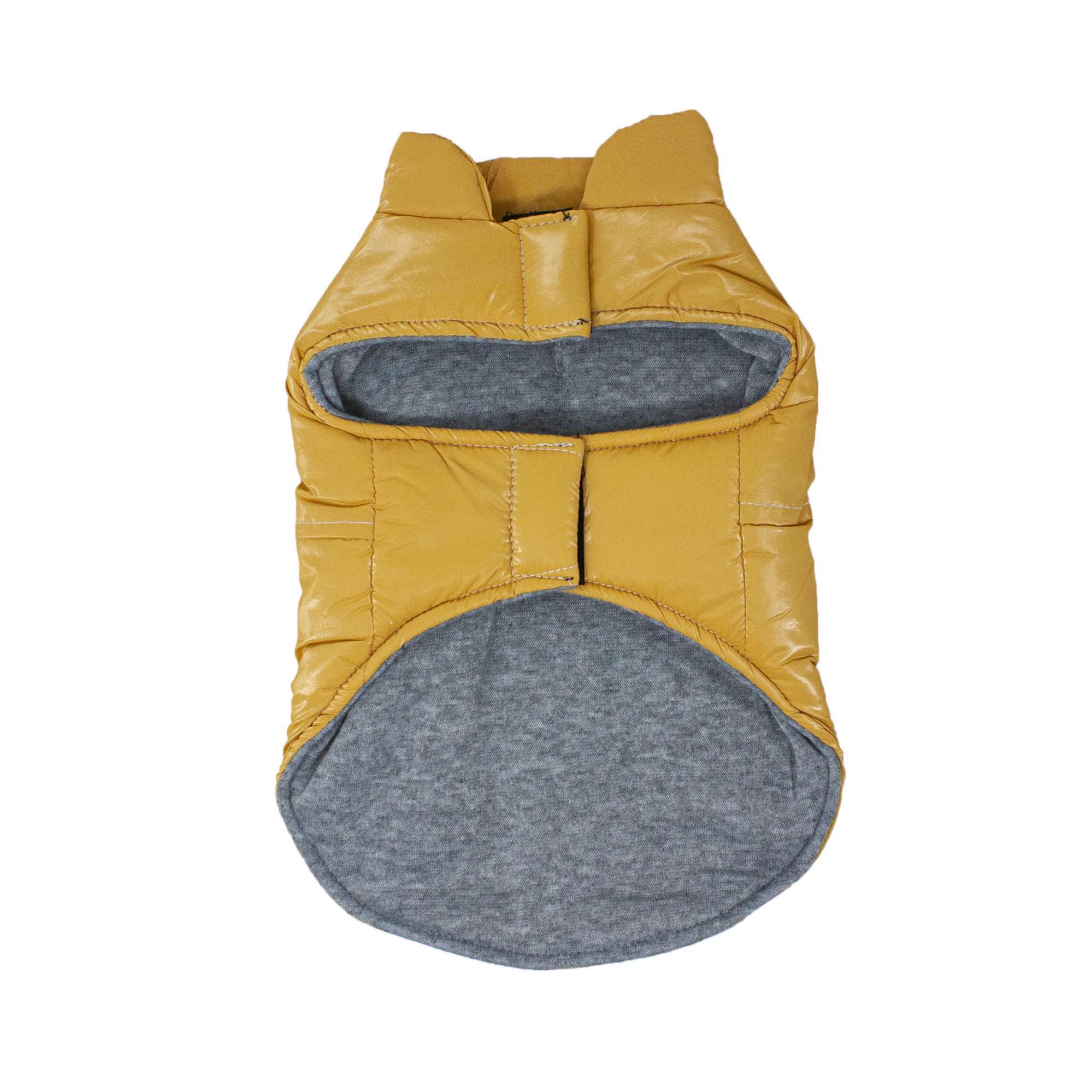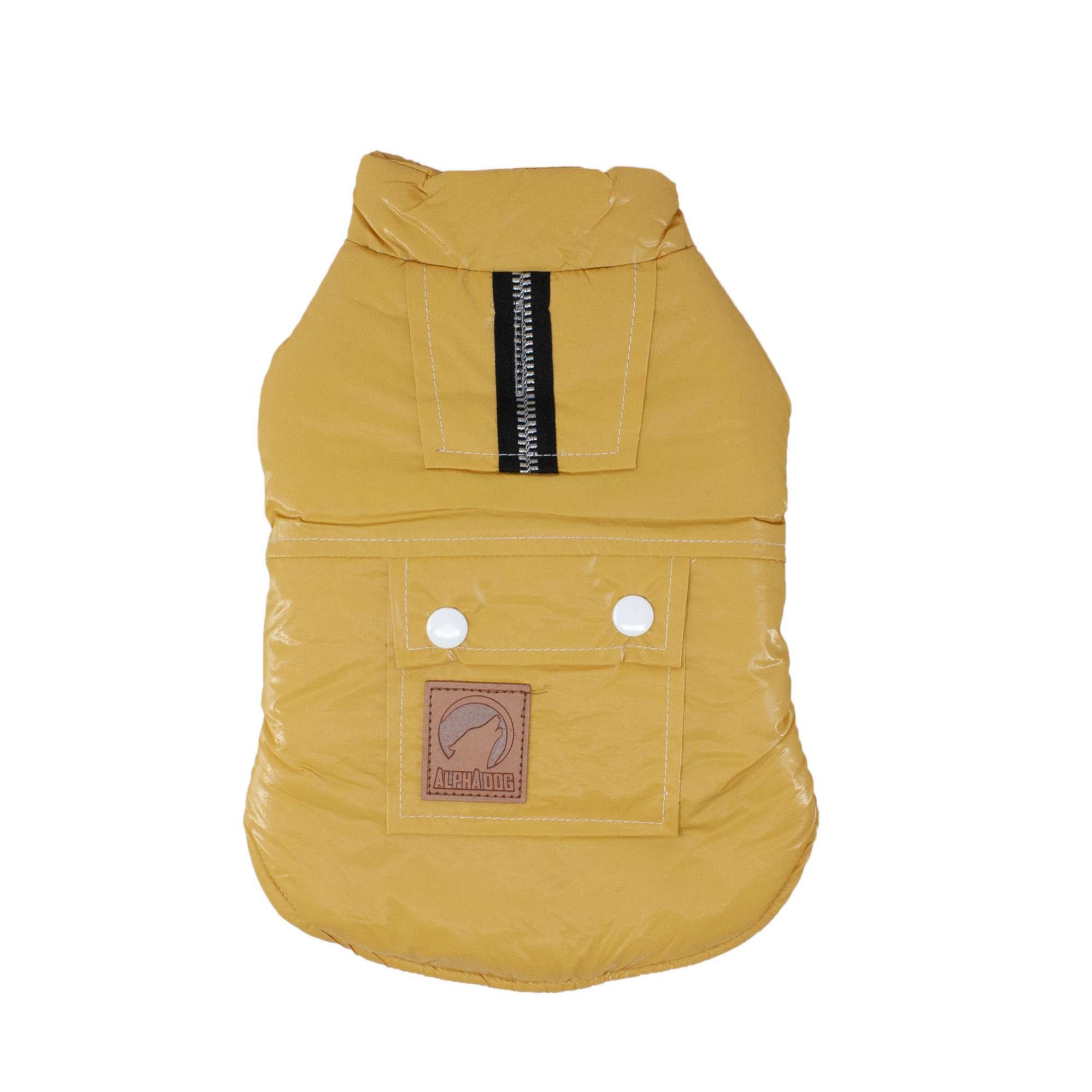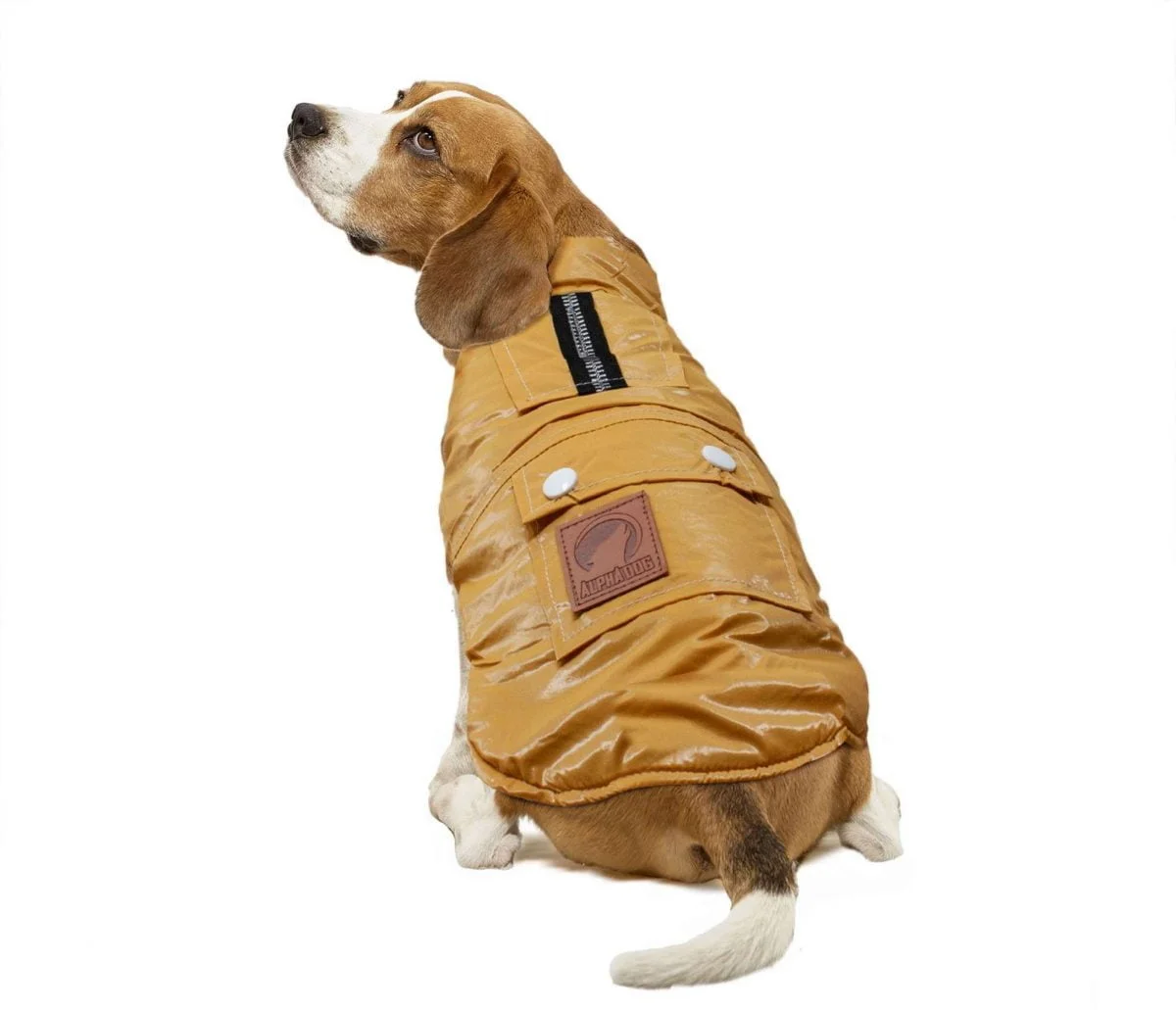 El abrigo metalizado mostaza de ALPHA DOG llega para abrigar a tu perro en los días más fríos, este moderno abrigo cuenta con un suave pero llamativo acabado metalizado y un forro interior gris que ofrece mayor protección contra el frío, además todo su material externo es impermeable por lo que lo mantendrá protegido durante los paseos en días lluviosos.