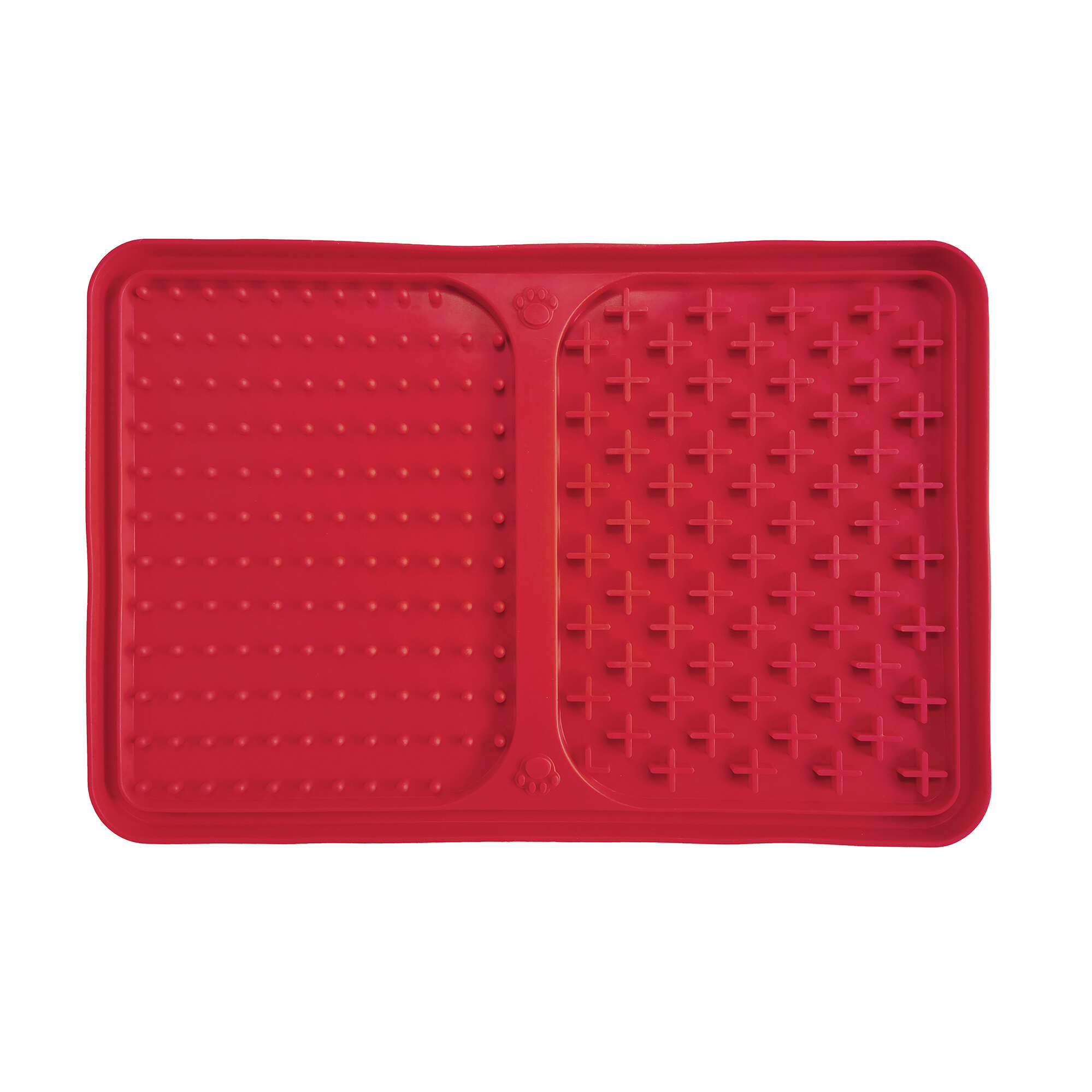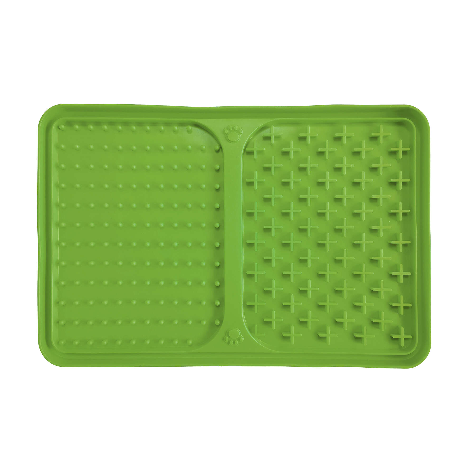 Este comedero está fabricado en silicona sin BPA de calidad alimentaria, se limpian fácilmente y son antideslizantes. Ayuda a promover una boca sana ya que lamer estimula la producción de saliva además de producir hormonas que calman a nuestra mascota. Hace que las comidas pequeñas duren más tiempo, ayudando a controlar el peso del animal, dividido en 2 secciones de diferente geometría para colocar diversos alimentos. Cuenta con ventosas para una fácil fijación que permiten fijarlo en posición horizontal o vertical como por ejemplo en el momento del baño.