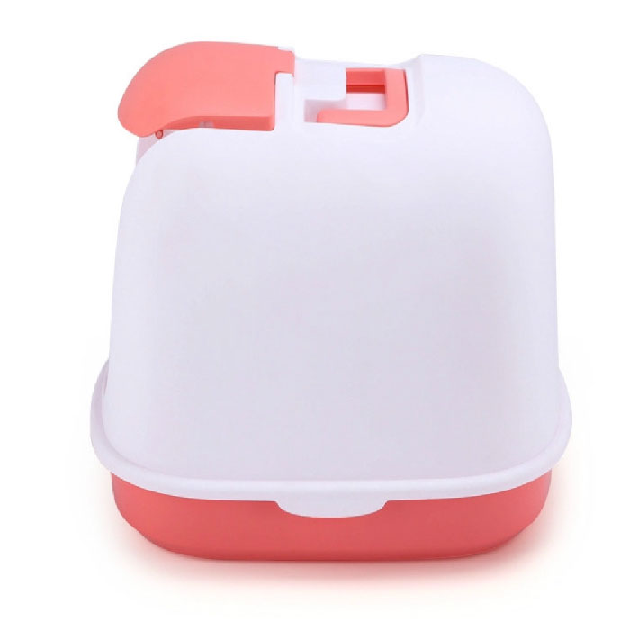Arenera cubierta, en material plástico de alta resistencia, amplia pero compacta, apta ergonomicamente para la medida promedio de cualquier gato adulto, con las medidas adecuadas para que sea cómoda para ellos pero no ocupe tanto espacio en casa; por su diseño cerrado evita el reguero de arena que se hace cuando el gatito tapa sus necesidades removiendo la arena; tiene una puerta frontal abatible para que el gatito entre y salga y una abertura superior mas amplia que permite que se haga la limpieza diaria de la arena con mayor facilidad, igualmente toda la tapa superior se puede sacar de ser necesario para una limpieza mas profunda. También en la parte frontal trae una especie de piso con franjas texturadas que sirve para que se limpien las patitas y dejen los residuos de arena cuando van a salir. Su estructura completamente cerrada evita que los malos olores se diseminen por toda la casa. Incluye una palita.
