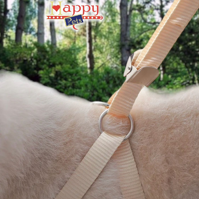 Arnés pechera, con la parte frontal en tela reforzada transpirable y la superior con correas graduables con un pin, con herrajes resistentes; incluye correa.