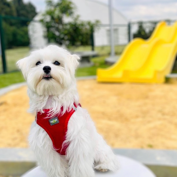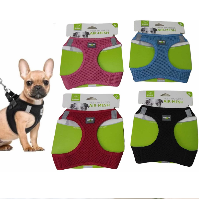 Arnés pechera acolchada, elaborada en malla transpirable, muy suave, cómoda y resistente. No incluye correa.