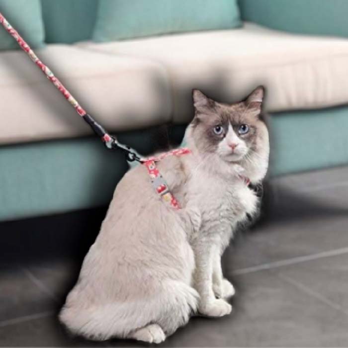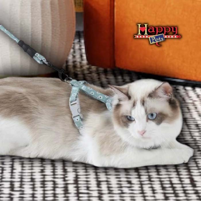 Arnés de tiras en forma de H, diseñado especialmente para gatos, de tal manera que no se lo puedan quitar fácilmente, ideal para gatitos escapistas; en tela suave pero resistente, graduable, con herrajes metálicos resistentes, en variados colores con diseño floral e incluye la correa redondeada; Muy cómodo, resistente y seguro. Apto para gatos de todos los tamaños y perros de raza pequeña.