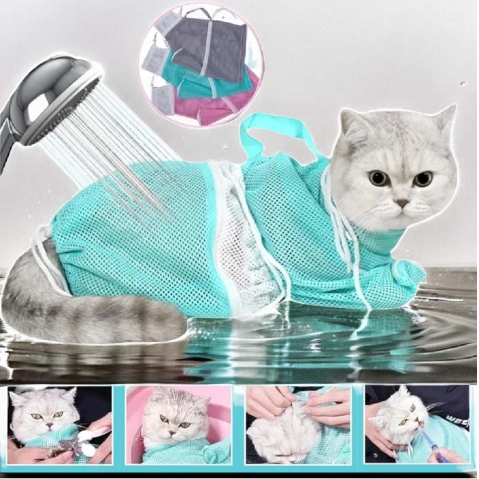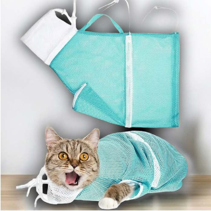 Bolsa cargador en malla, ajustable a cualquier tamaño de gatito, para poder bañarlos, cortarles las uñas, limpiar orejas, darle medicinas o poner una inyección, con mayor facilidad, sin temor a que rasguñe o se pueda escapar. Con 4 correas ajustables a cabeza, cuello cintura y cola, para poder ajustarlo bien a la medida del gato y evitar accidentes; también tiene una cremallera en la parte delantera baja por si se quiere dejar que saque solo una de sus paticas a la vez, para poder cortar la uñas. También tiene un asa en la parte superior para tener un manejo del gato mas fácil y sin riesgos. Material Poliéster de alta calidad, transpirable, ligero, suave al tacto y fácil de lavar.