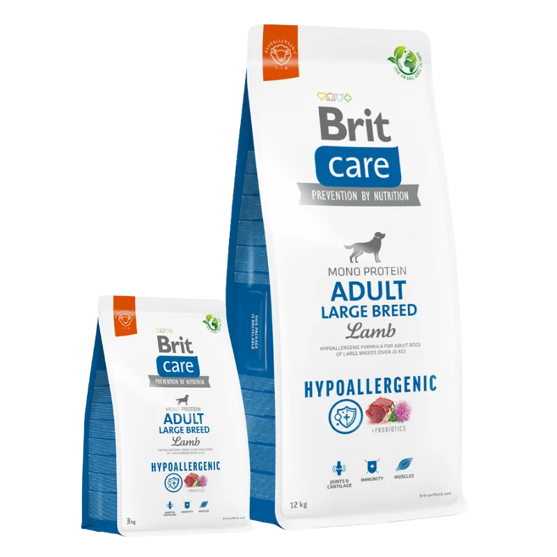 Brit Care Hypoallergenic Adult Large Breed es un alimento Super Premium hipoalergénico, diseñado para satisfacer las necesidades de perros adultos de razas grandes (más de 25 kg) con digestión sensible o propensos a alergias alimentarias. Elaborado con una única fuente de proteína animal y enriquecido con ingredientes funcionales, este alimento proporciona soporte inmunológico, digestivo y articular.