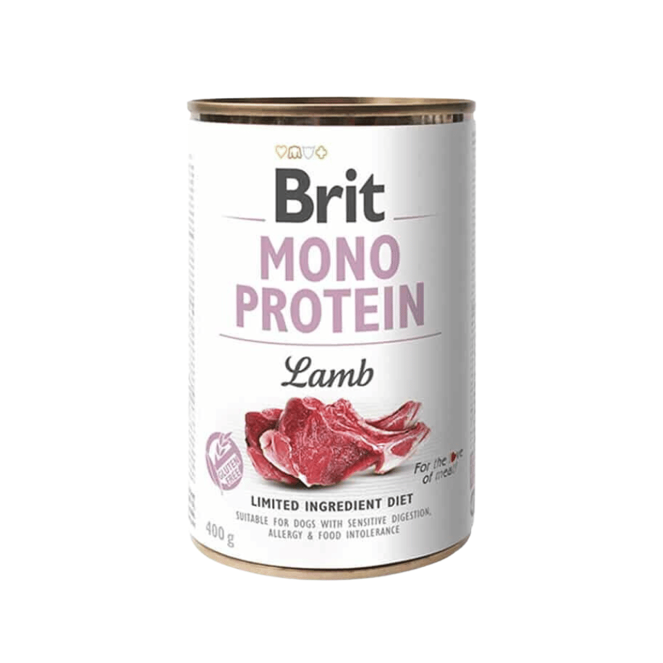 Brit care Mono Protein Lamb es un alimento húmedo en base a carne de cordero para perros de todas las razas y edades.