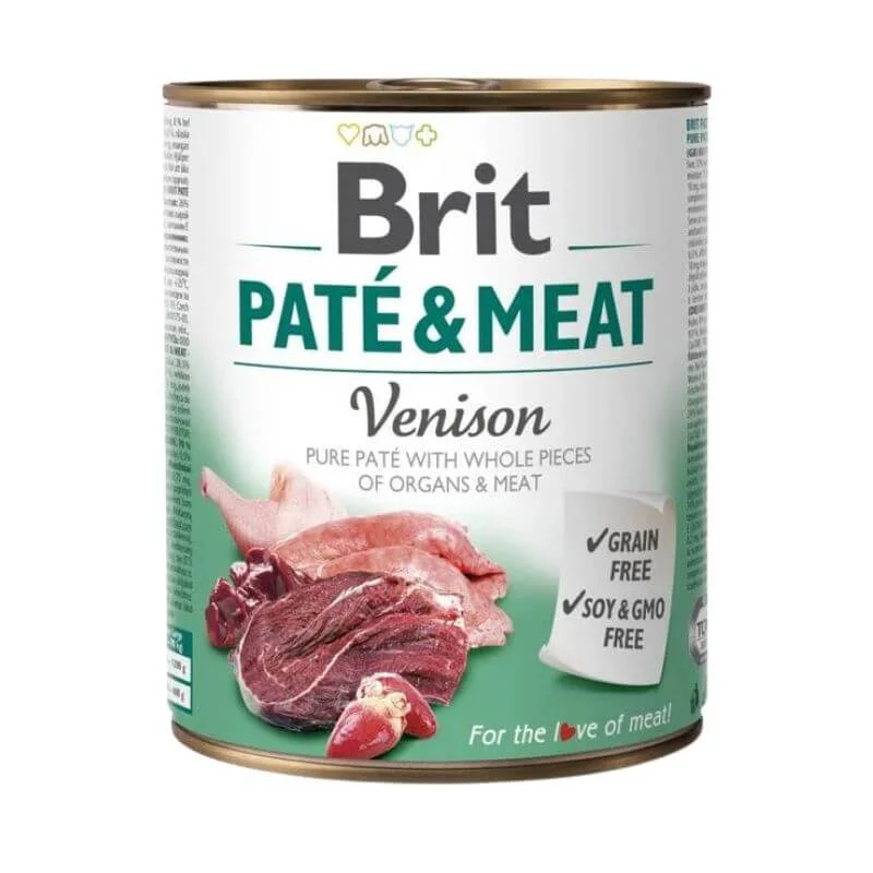 Brit Paté & Meat Venado es un alimento húmedo completo para perros adultos elaborado con un alto contenido de carne de calidad premium. Su fórmula equilibrada combina 44% de pollo fresco (carne y órganos) con 26% de venado fresco (carne y órganos), proporcionando 70% de proteína animal de alta digestibilidad. La carne de venado es una excelente fuente proteica hipoalergénica, ideal para perros con sensibilidades alimentarias. La textura suave de paté con trozos enteros de carne y menudencias garantiza una experiencia gastronómica completa que los perros adoran, mientras el aceite de salmón aporta ácidos grasos esenciales para piel y pelaje saludables.