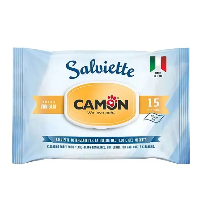 Camon Salviette Toallitas Húmedas con Aroma Vainilla para Perros y Gatos – 15 Unidades