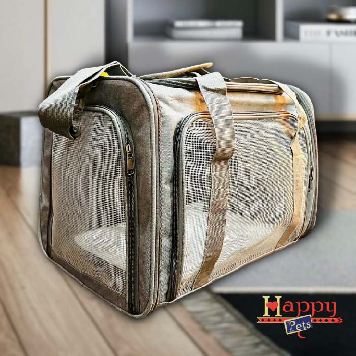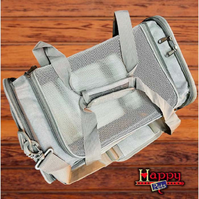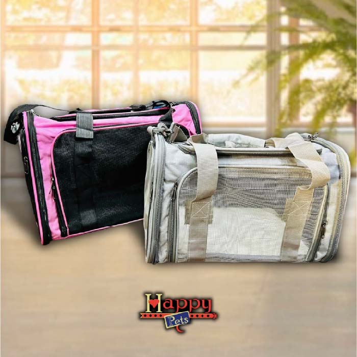 Cargador en Lona impermeable de alta resistencia, con costuras reforzadas, 3 ventanas en malla con cremallera, bolsillo, asas cortas y largas, cinturón de seguridad, base semirígida, acolchonada y en material térmico ovejero para mayor estabilidad y confort, soporte trasero para asegurar el cargador a la maleta de viaje o a la silla del carro; apto para cabina de avión.
