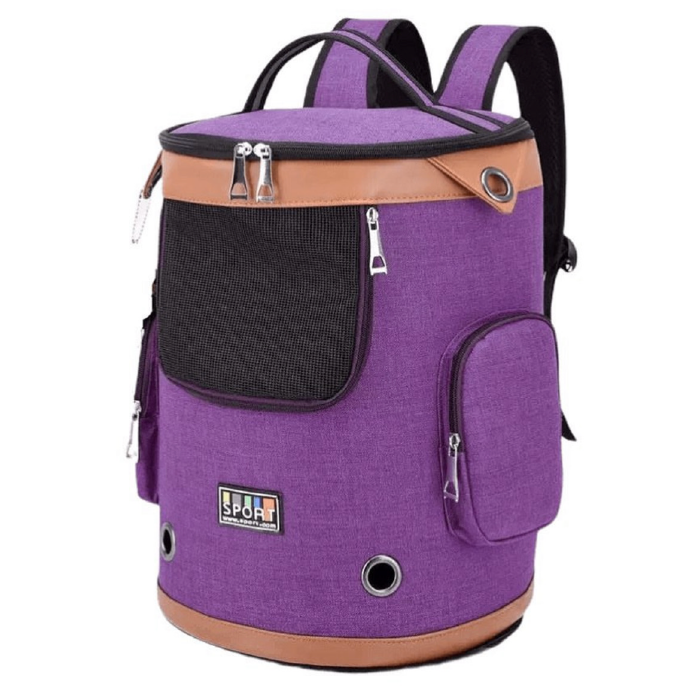 Morral cilíndrico, completamente plegable para desarmar y guardar fácilmente, que se puede llevar en el pecho o la espalda, con ventana frontal, puerta superior, 2 bolsillos laterales, orificios y malla de ventilación, detalles en Cuero Sintético, espaldar y asas acolchonadas para mayor comodidad, material Lona gruesa impermeable y base semirrigida para mayor estabilidad y estructura. Ideal para viajes en moto o bicicleta, para gatos y perros pequeños y medianos. Soporta hasta 12 kilos.