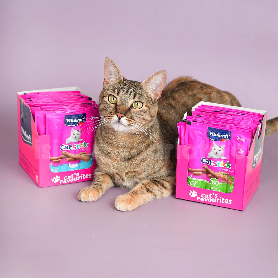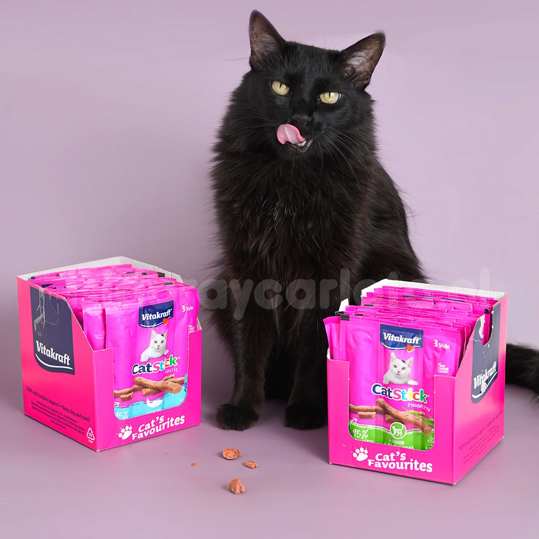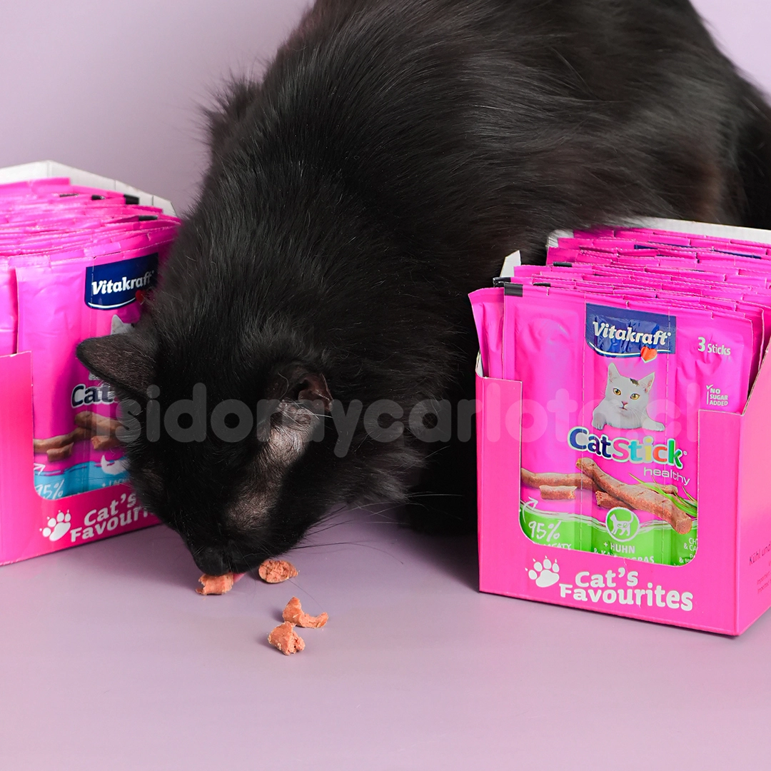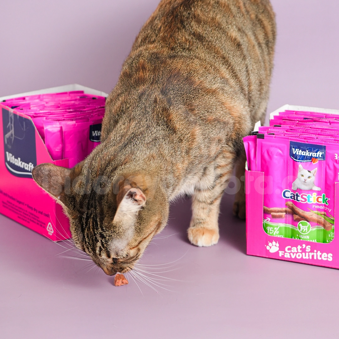 Si tu michi ama los sabores intensos y las texturas suaves, el Cat Stick Vitakraft salmón snack para gatos será su nuevo favorito.