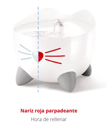 - Cuenco frontal estático: permite beber incluso cuando la fuente está apagada.