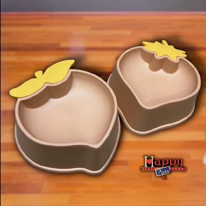 Comedero mediano en forma de frutas, en plástico resistente, fácil de lavar, con antideslizantes. Apto para perros pequeños y medianos. Disponible en diseños y colores variados, sujetos a disponibilidad en la tienda.