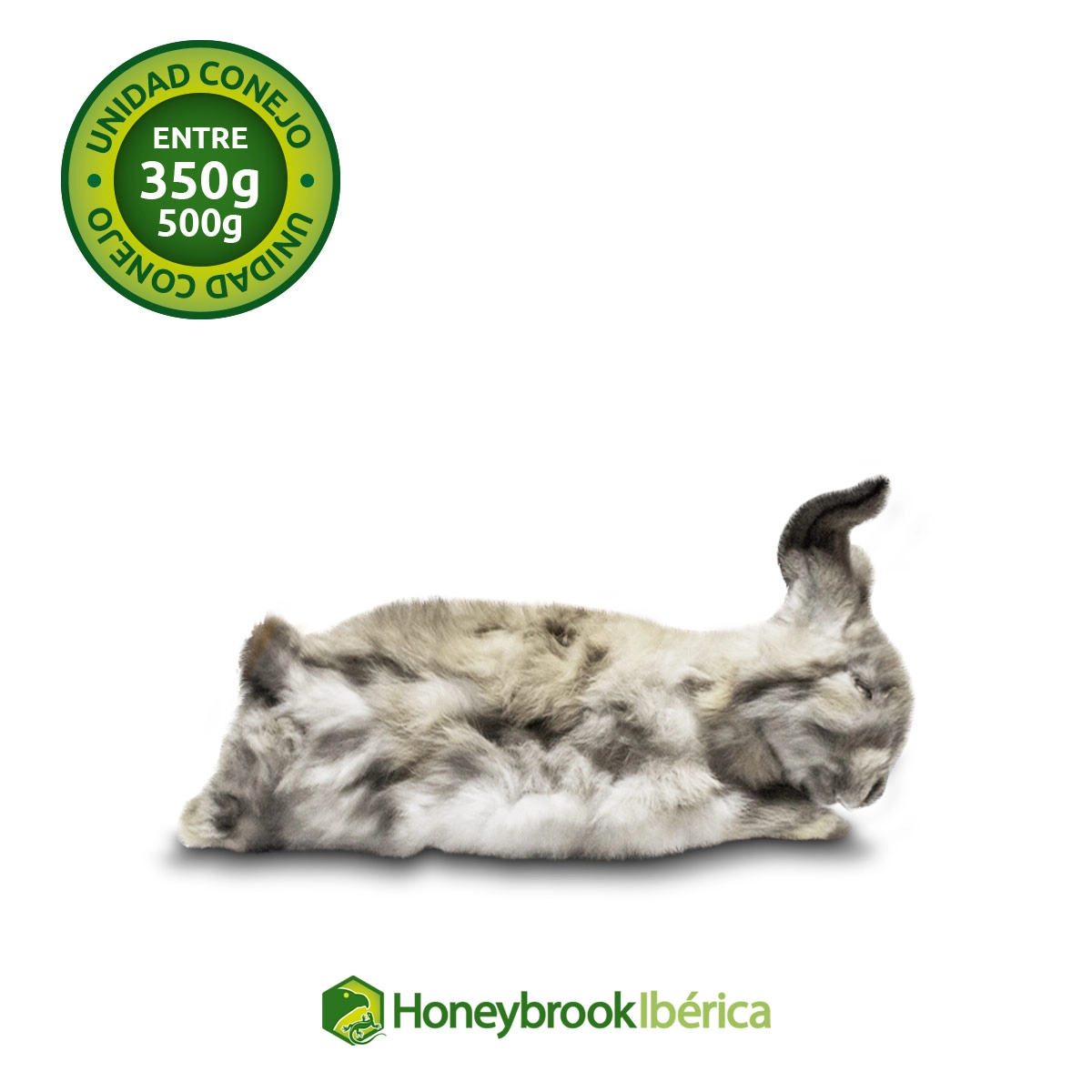 Conejo destetado congelados, se venden en unidades de un peso entre 350 y 500 gramos aproximadamente.