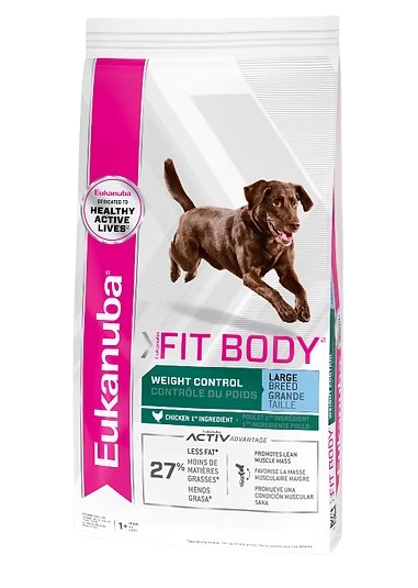 El alimento seco para perros de raza grande Eukanuba Fit Body Weight Control es una nutrición completa y equilibrada para perros de razas grandes de 15 meses en adelante con un peso ideal de más de 55 libras