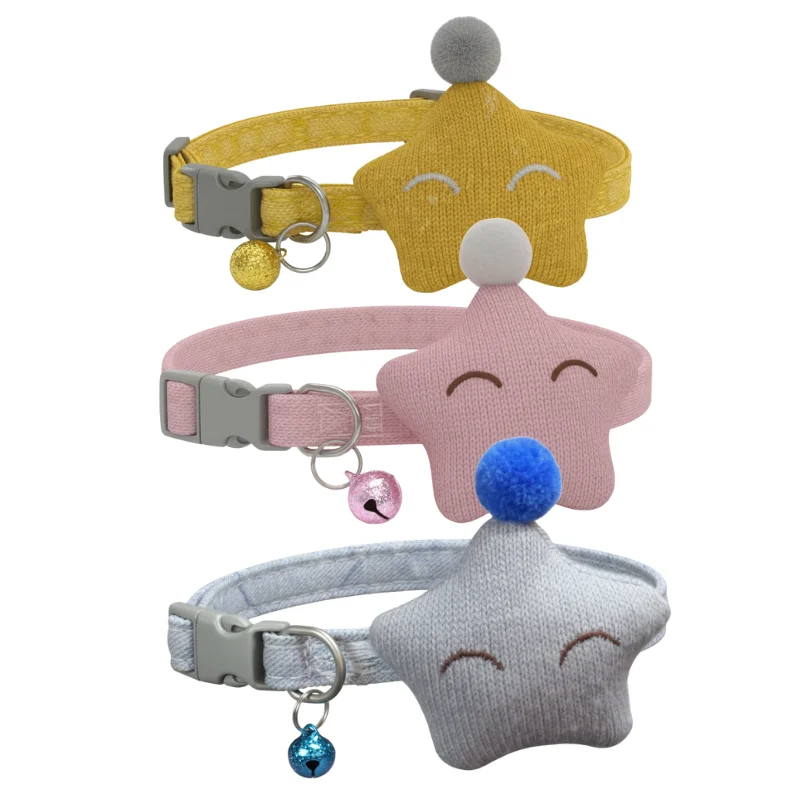 - Collar decorativo para gatos con diseño de estrella feliz acolchada y pompón colorido.