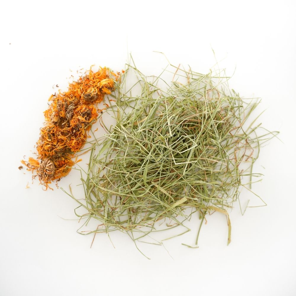 La caléndula, incluida en esta mezcla, no solo añade un toque sabroso, sino que también aporta infinidad de micronutrientes como la vitamina A y flavonoides, necesarios para la salud de nuestra mascota.