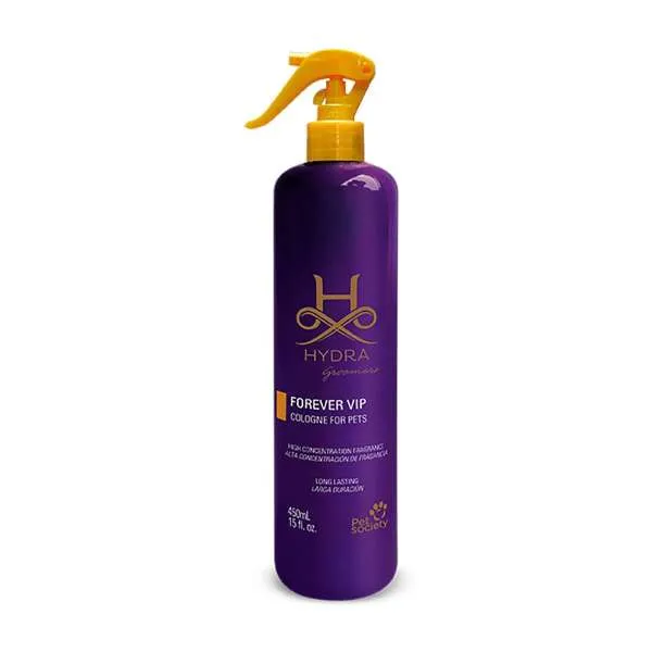 Hydra Groomers Cologne Forever VIP de Alta Concentración Colonia para perros y gatos con alta concentración de fragancia. Asegura una fragancia encantadora para tu mascota con la loción Hydra Groomers Forever VIP Cologne. Tiene una suave mezcla floral afrutada, con notas de durazno, lirio y pimienta rosa.
