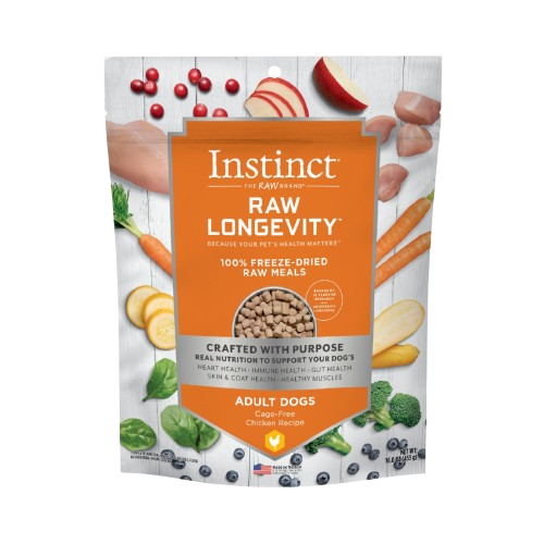 Instinct LONGEVITY alimento crudo liofilizado de pollo para perros adultos