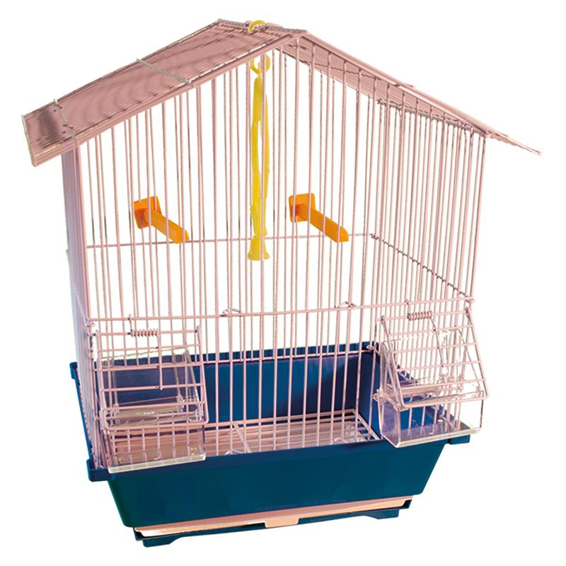Jaula para aves pequeñas. Incluye: bebedero , comedero, 2 barras de plástico y columpio con campana. Bandeja extraible. Medidas 30 x 23 x 39 cm