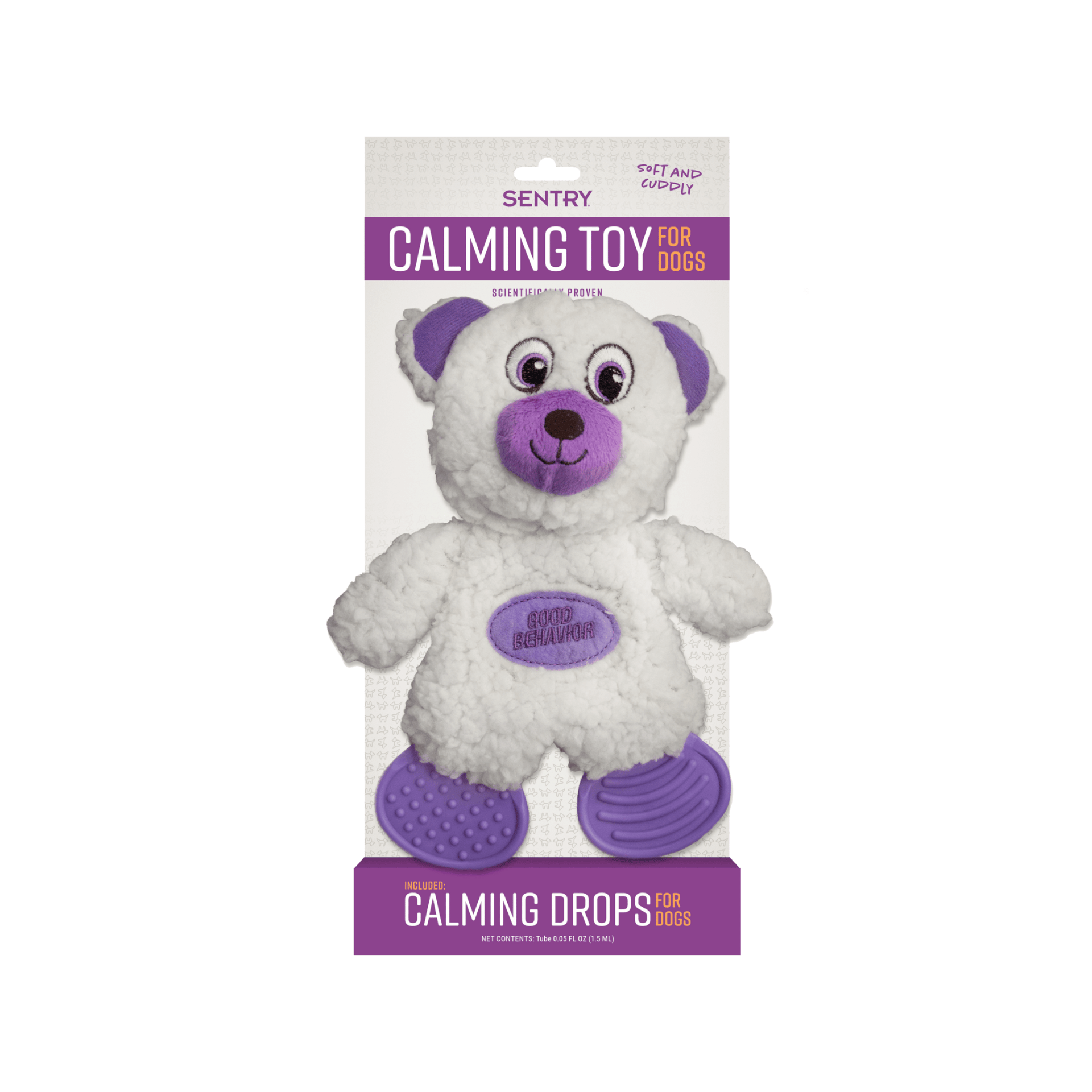 • Suave y blando: el juguete calmante SENTRY es suave y reconfortante, ayudando a calmar a los cachorros y perros ansiosos cuando se combina con las gotas calmantes SENTRY.