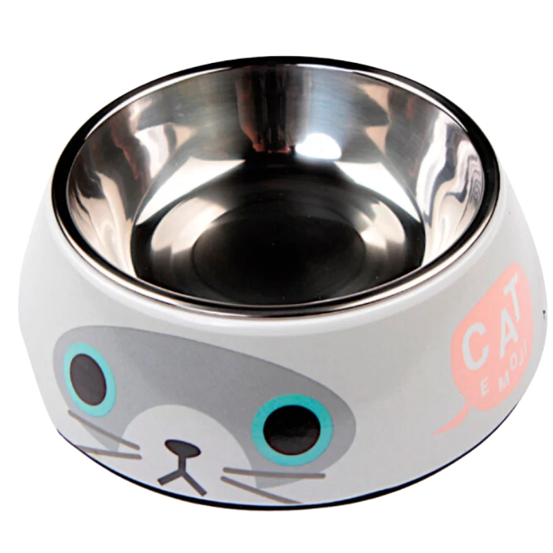 MP Plato de Melamina con Acero Inoxidable 340 ml (BO-3056) Gato Color Gris