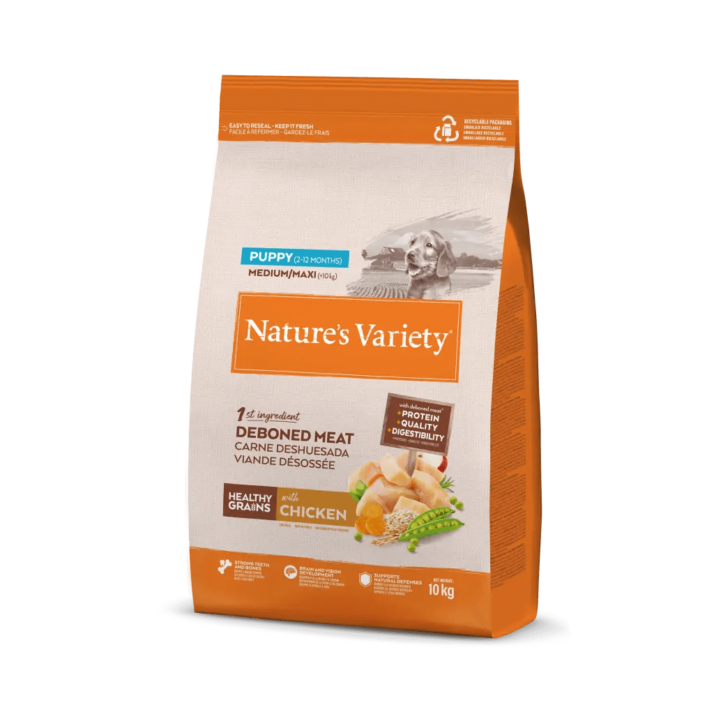 Carne de pollo deshuesada* (20%), proteína deshidratada de pollo (18%), guisantes deshidratados* (15%), proteína de maíz, arroz integral* (7%), grasa avícola* (6,5%), avena* (6,5%), cebada integral*, proteínas animales hidrolizadas (ave, cerdo, pescado) (4%), sustancias minerales, aceite de pescado* (1%), zanahoria deshidratada* (0,5%, equivalente a un 4% de zanahoria fresca), manzana deshidratada* (0,3%, equivalente a un 2% de manzana fresca), algas marinas deshidratadas (kelp)* (0,01%), romero deshidratado* (0,01%). *Ingredientes naturales