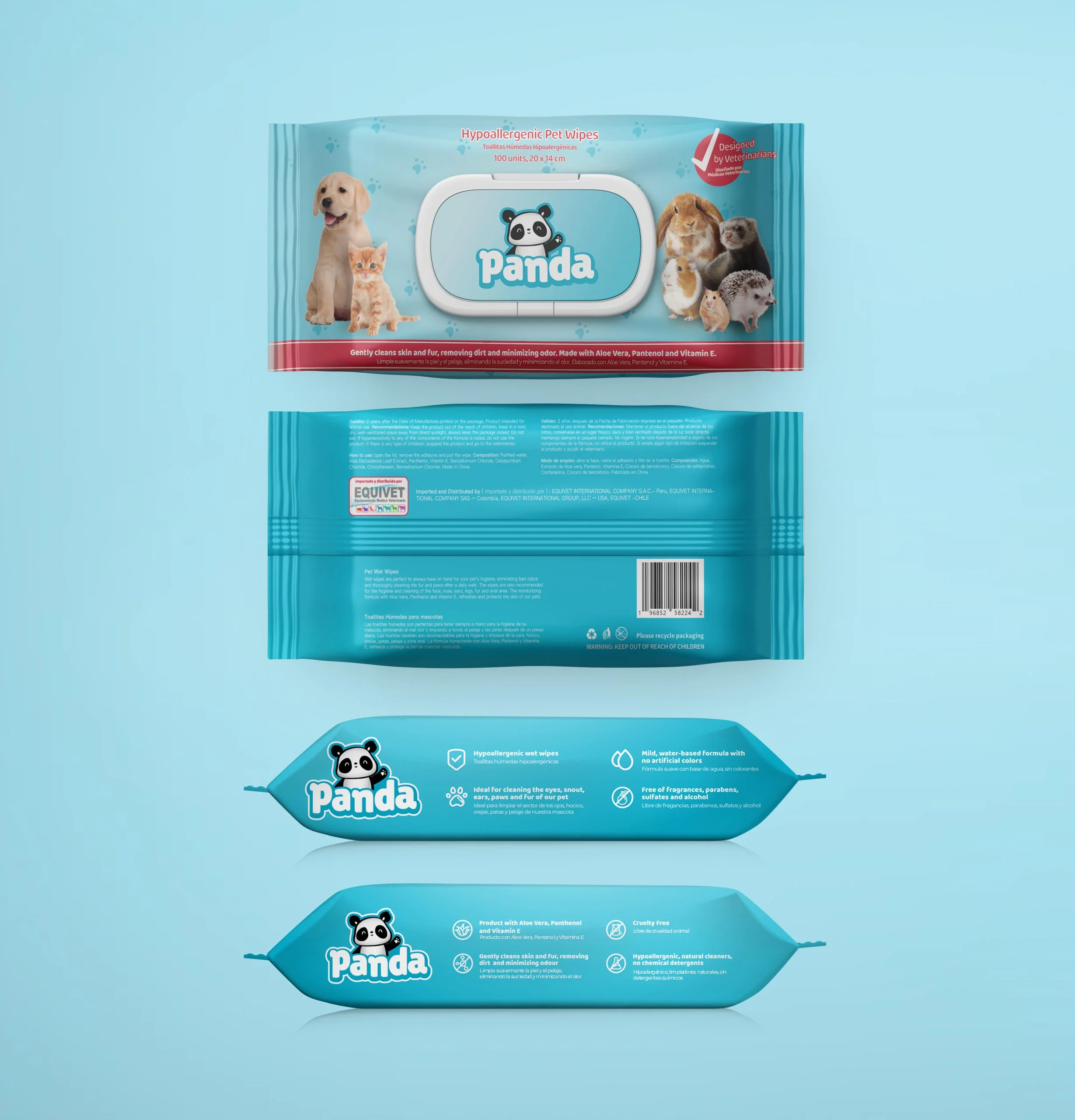 Las Toallitas Húmedas Panda son la solución ideal para el cuidado de tu mascota, combinando limpieza, hidratación y protección en cada uso. ¡Mantén a tu peludo amigo limpio y feliz todos los días con estas prácticas y efectivas toallitas!