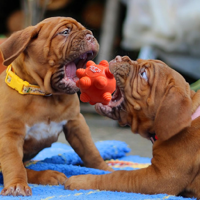Pelota mediana maciza, con protuberancias redondas y textura rugosa, ideal para peludos juguetones medianos y grandes, a los que les gusta jugar a atrapar pelotas y morderlas; por su textura ayuda también a limpiar los dientes del peludo y fortalece sus mandíbulas. Material liviano, altamente resistente, fácil de limpiar.