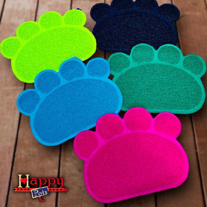 Tapete en forma de huellita, ideal para ponerlo bajo los comederos y que no se deslicen ni hagan reguero, o para poner a la salida de las areneras para que se limpien sus paticas y dejen allí el exceso de arena. Material resistente, flexible, impermeable, fácil de limpiar.